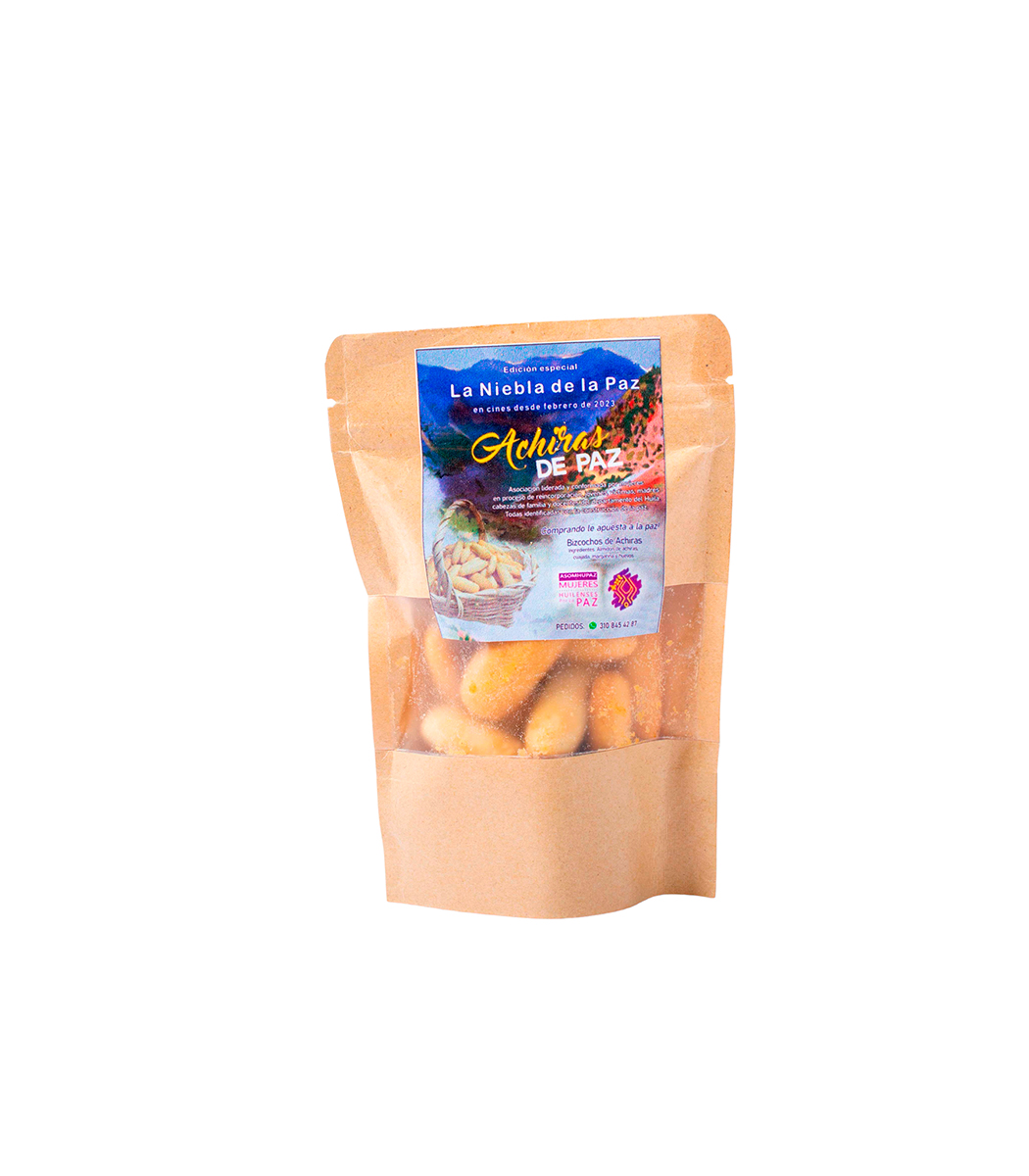 El bizcocho de achira o simplemente “achira” es un amasijo que se hace con el almidón de achira o sagú (Canna indica), una planta de origen sudamericano usada por los pueblos prehispánicos de Perú y Colombia, al cual se le agrega cuajada fresca, mantequilla y yemas de huevo. Luego se introducen en el horno, dando como resultado una deliciosa galguería que usualmente se acompaña con una taza de aguapanela caliente.