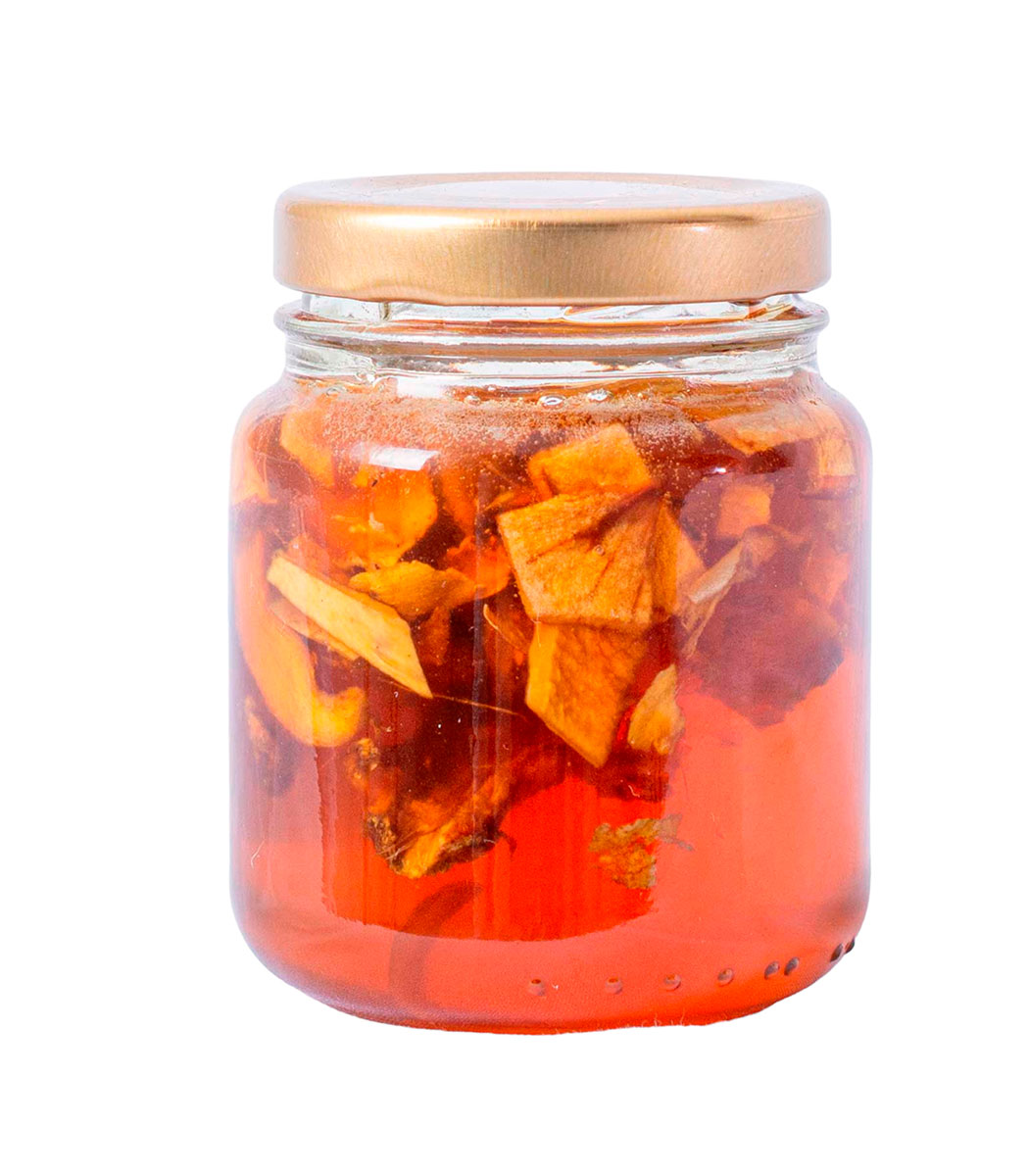 Todos los beneficios y el sabor de nuestra deliciosa miel de abejas multifloral, 100% pura y natural, con el toque perfecto de las mejores frutas deshidratadas en trozos: Limón, jengibre, manzana, mango y piña, una combinación única que despertará tus sentidos, viene lista para consumir, la puedes usar para endulzar de una forma diferente tus comidas y bebidas o disfrutarla como postre natural.