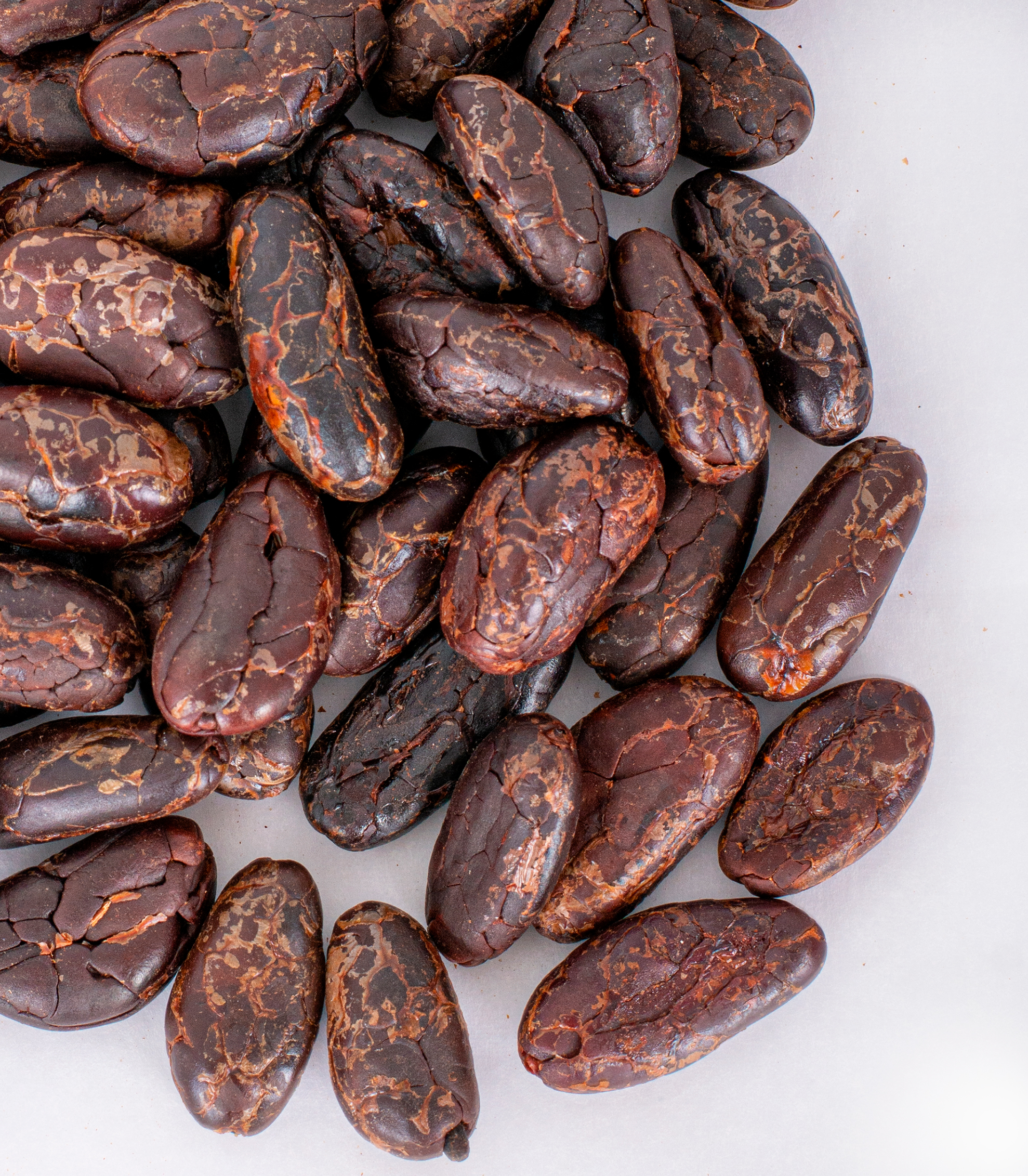 Snack de granos de cacao puro. Luego de cosechar el fruto, el cacao se fermenta entre 5 a 7 días para luego ser secados por unos 5 días más. Posteriormente, los granos del cacao se tuestan. El resultado es este snack, una alternativa más saludable para los amantes del chocolate. Son una excelente fuente de fibra, proteínas y grasas saludables. Además, son ricos en minerales como hierro, magnesio, fósforo, zinc, manganeso y cobre. El fósforo, el magnesio y el manganeso son vitales para los huesos sanos, mientas que el cobre y el hierro son necesarios para producir glóbulos rojos que suministran oxígeno a nuestro cuerpo.